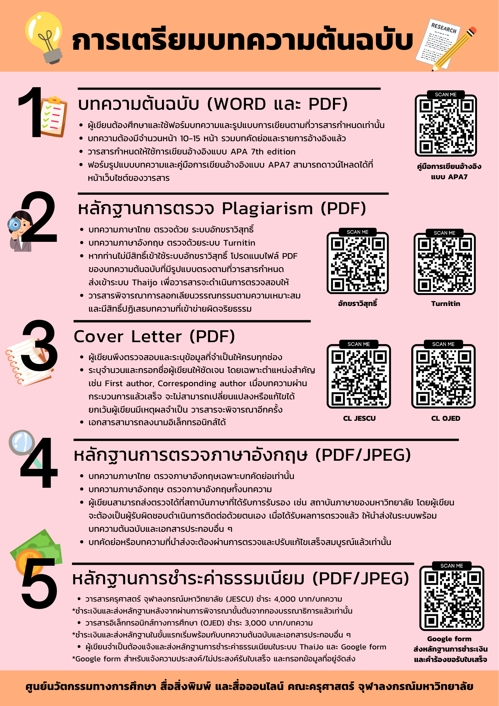 ***Authors can view and download sample supporting documents, including the ThaiJO system user guide, article template, cover letter form, APA 7th edition referencing guide, and payment form, in the following section, “Download”