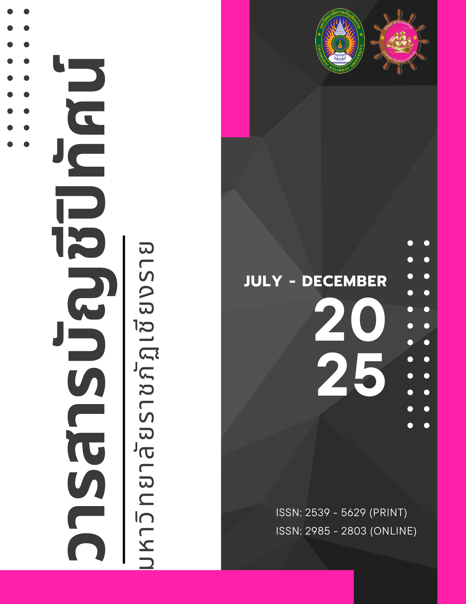 ต้นฉบับที่ได้รับการตีพิมพ์ในวารสารบัญชีปริทัศน์ มหาวิทยาลัยราชภัฏเชียงราย ถือเป็นกรรมสิทธิ์ของมหาวิทยาลัยราชภัฏเชียงราย ไม่อนุญาตให้นำข้อความทั้งหมดหรือบางส่วนไปพิมพ์ซ้ำ เว้นเสียแต่ว่าจะได้รับอนุญาตจากมหาวิทยาลัยราชภัฏเชียงราย เป็นลายลักษณ์อักษร